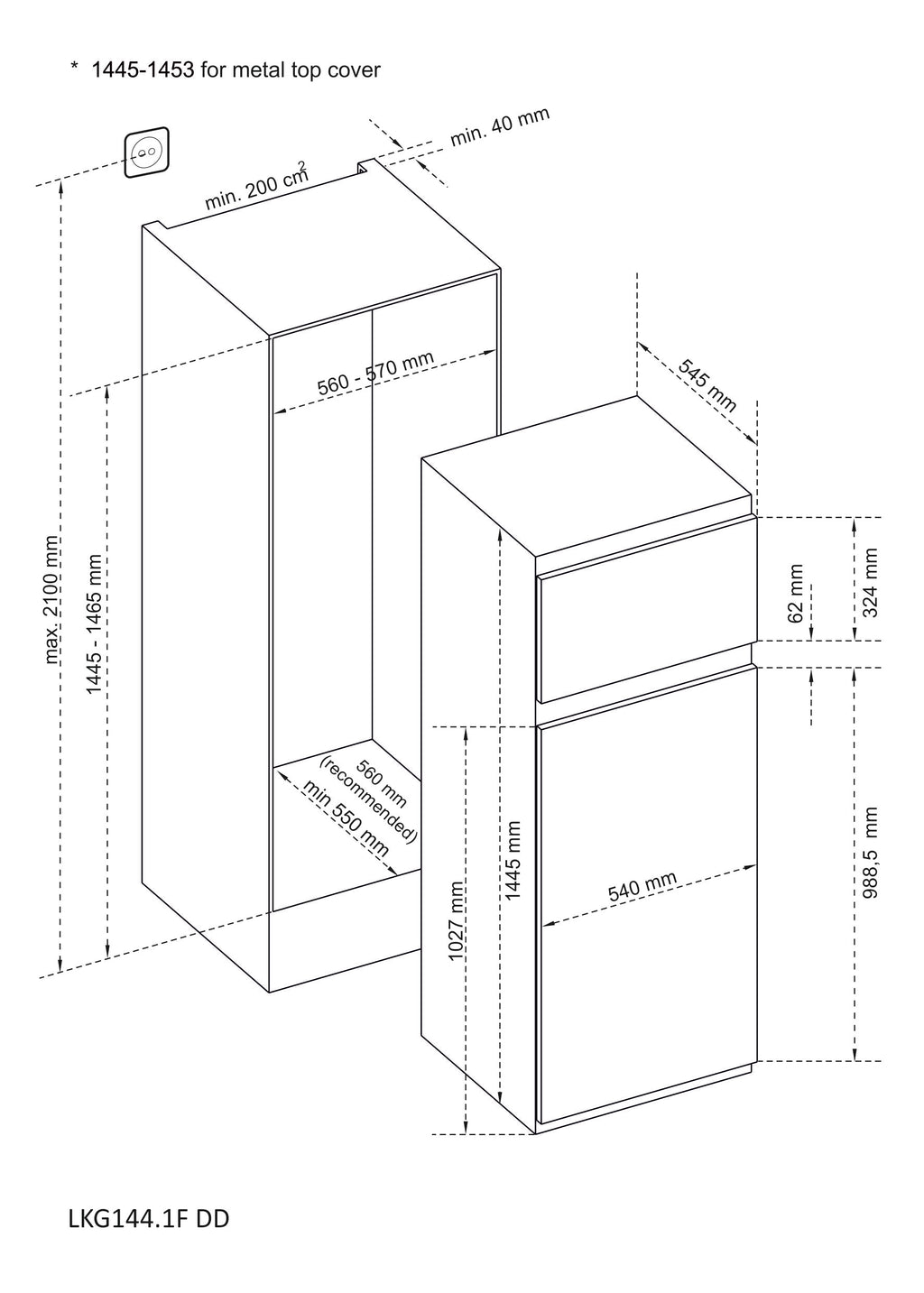 1 × Laurus LKG144e DD Kühlschrank