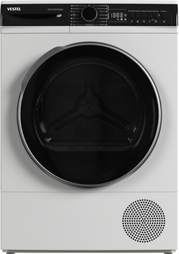Der Vestel VG-THT277GW2 Wäschetrockner kombiniert hohe Energieeffizienz mit praktischer Bedienung und vielseitigen Programmen — ideal für Haushalte mit 2–3 Personen oder mittlerem Wäschevolumen. Der Trockner nutzt moderne Wärmepumpentechnologie für effiziente Leistung bei niedrigem Energieverbrauch.